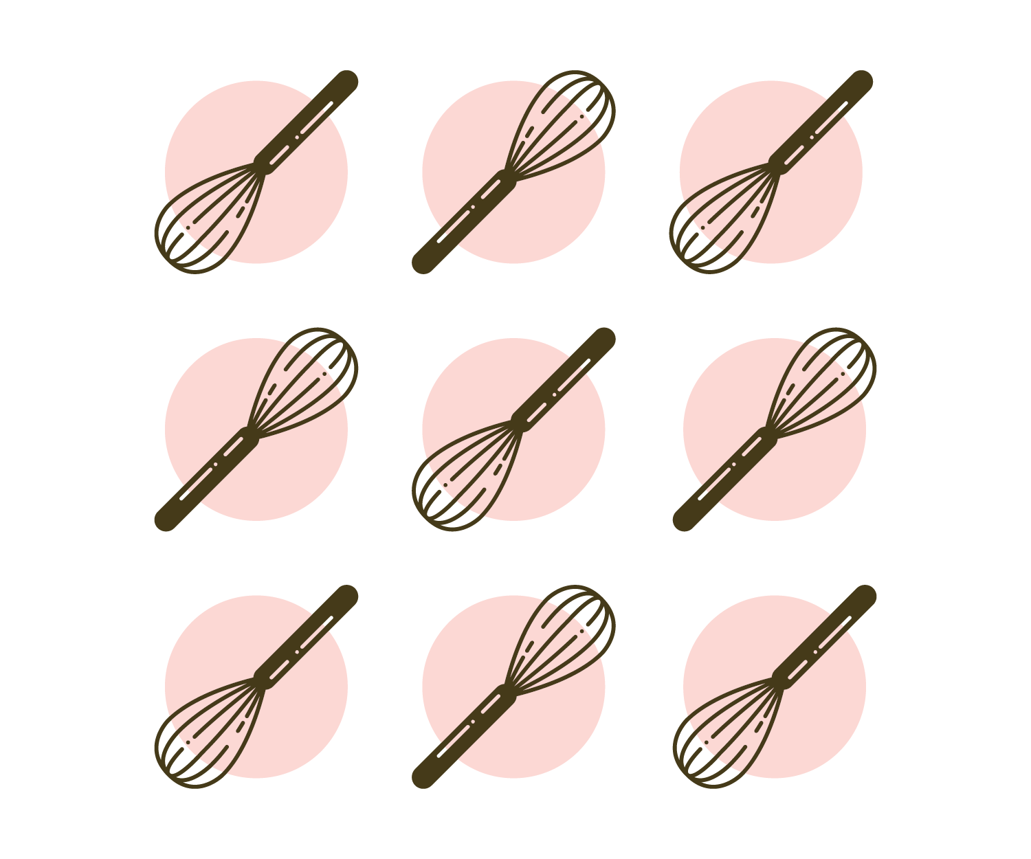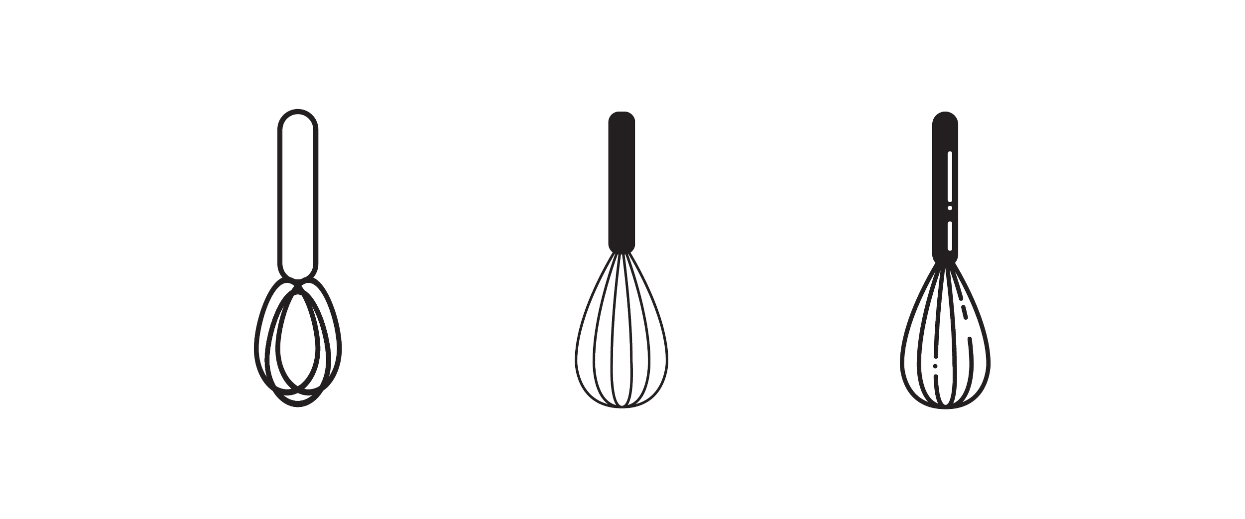 When conceptualizing a symbol for p.made I explored many necessary tools for a baker, but I chose to focus on the whisk. Like Paula, the whisk came from humble beginnings. In fact, the first whisks were simply bundled twigs. But since then this tool has improved with multiple variations available today.