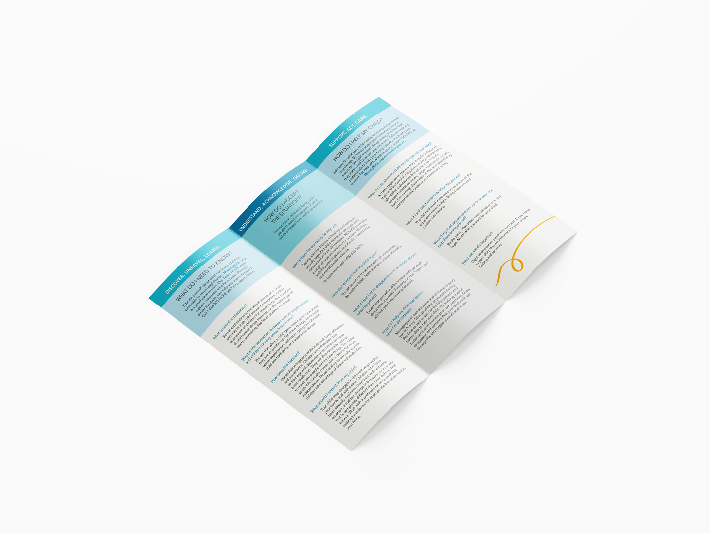 By adding Do’s and Don’ts through iconography and color this densely packed tri-fold brochure transformed into an organized booklet that offers families easily identifiable action items and informative ways to provide support.